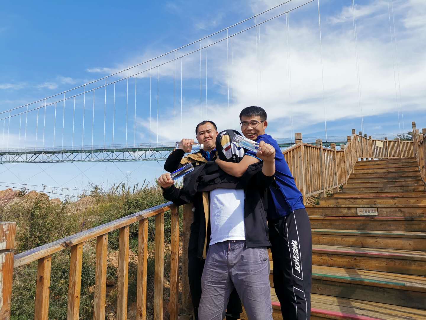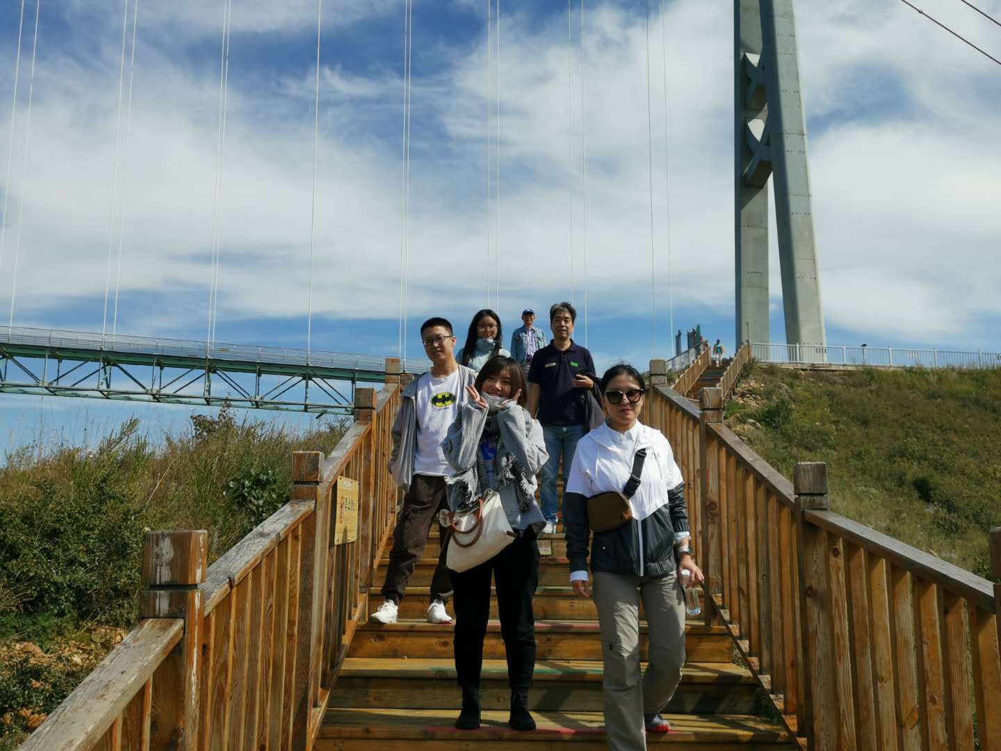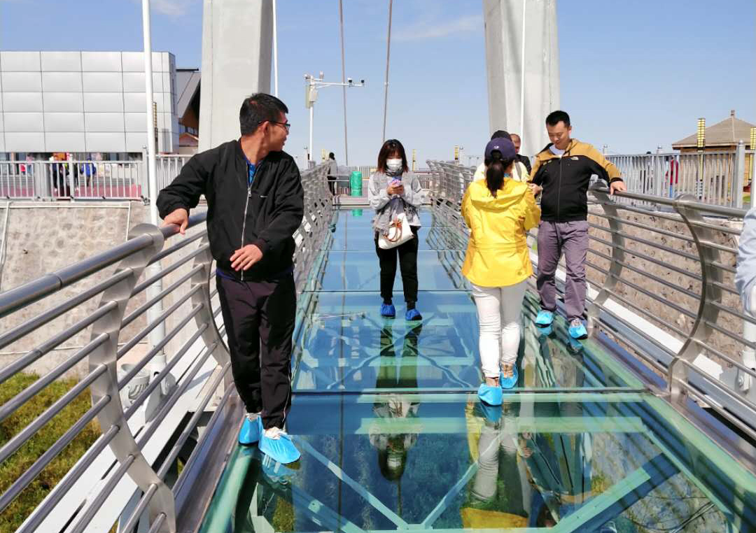 14日下午游覽車載著一行人行駛在山間的小路上,清風(fēng)徐徐,好不愜意,接著迎來了全長(zhǎng)639米的玻璃棧道挑戰(zhàn),驚心動(dòng)魄,姿態(tài)百出。